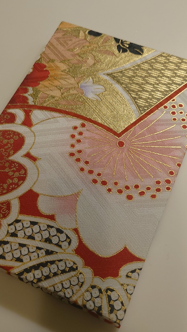 京友禅 御朱印帳 京友禅型染めの伝統技法で職人が染めた正絹(シルク100%)の生地を御朱印帳のカバーに使用しました。 京友禅の中でも振袖の生地を使用しています。振袖は華やかでたくさんの色を使用しています。御朱印帳としてだけでなくインテリアとして飾ってもおしゃれです。 同じものが無い一点ものです。 サイズ 横 約12.3cm✕縦18.3cm