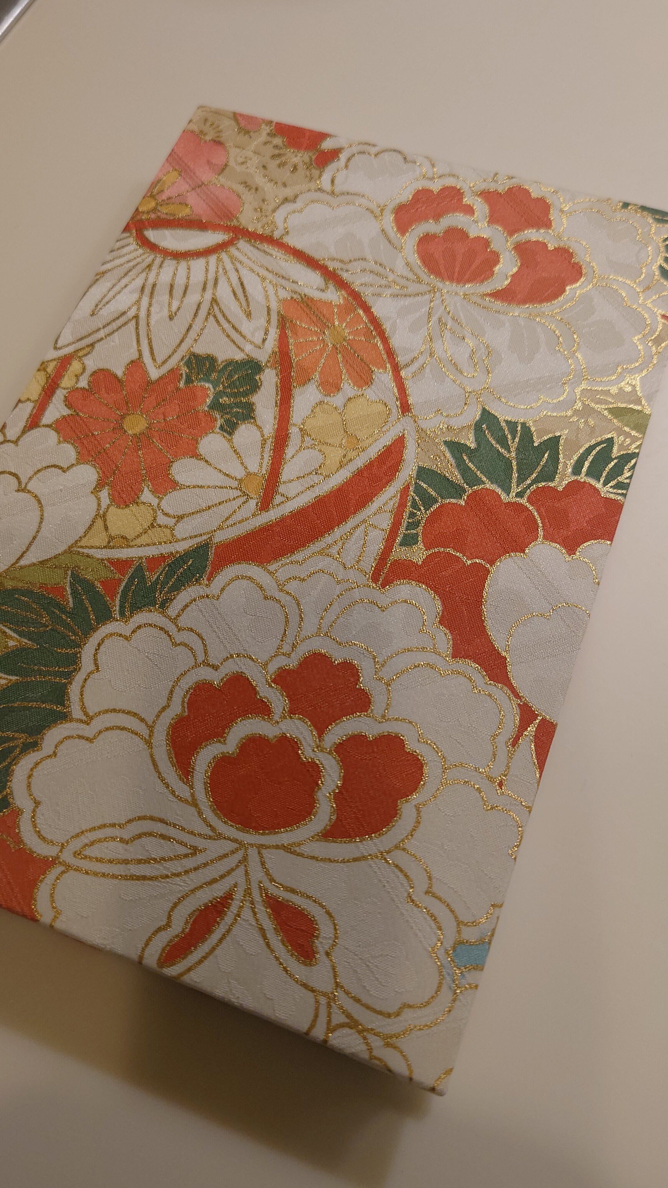 京友禅の中でも振袖の生地を使用しています。振袖は華やかでたくさんの色を使用しています。御朱印帳としてだけでなくインテリアとして飾ってもおしゃれです。